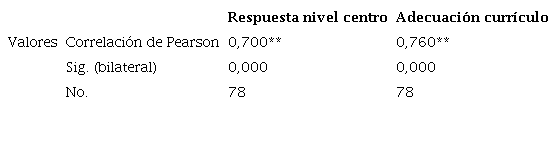 El estudio correlacional permite explicar en qué medida una variable explicaría otras (Toro y Parra, 2006). En este caso, para conocer el tipo de correlación entre los valores de la comunidad educativa y la calidad de la respuesta educativa, se llevó a cabo la prueba de relación lineal entre variables correlación de Pearson (tabla 16).