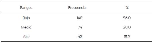 Para facilitar la interpretación de los resultados, las puntuaciones directas de la escala se han dividido en tres rangos (bajo, medio, alto). Los niveles de autodeterminación de la mayoría de los participantes (56 %) se sitúan en un rango bajo (tabla 4). No obstante, algunos de los encuestados muestran un nivel de desarrollo medio (28 %) o alto (15.9 %) de las competencias asociadas a la autodeterminación.