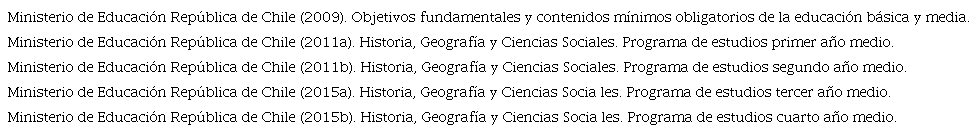 Ministerio de Educación República de Chile (2015a). Historia, Geografía y Ciencias Sociales. Programa de estudios tercer año medio.