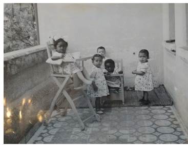 A materialidade torna-se elemento presente na discussão quando analisamos as imagens abaixo. A primeira delas, a reprodução de uma foto encontrada nos arquivos da creche.