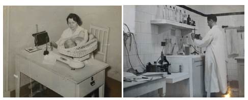 Em outra vertente de trabalho, a creche, inicialmente instalada junto à policlínica realizava atendimentos clínicos e até laboratoriais. As imagens abaixo permitem visualizar um pouco do que seria esta outra forma de atuação.