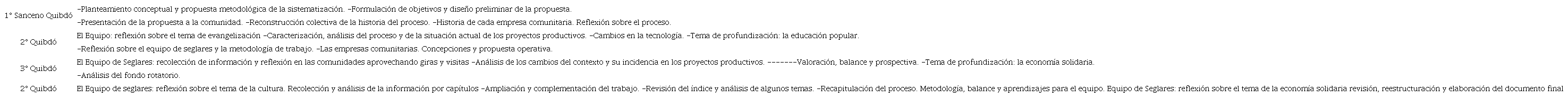 Todas las sistematizaciones revelan una contradicción. Se dice, por un lado, que fue iniciativa de la gente, que las personas participaron activamente en ella y se organizaron prácticamente solas para llevarla a cabo. Por otro, se señala como dificultad la falta de consciencia, de tiempo, de interés, respecto a una tarea tan importante como la de recuperar saberes: