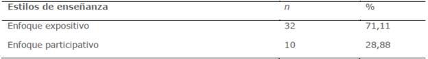 En relación con los estilos de enseñanza, el profesorado expresa las siguientes opiniones:
