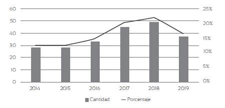 Como se ve, entre 2017 y 2019 se registró un incremento en el interés por la oralidad como objeto de estudio, expresado ello mediante el mayor número de artículos publicados en las seis bases de datos exploradas. Esto, por cuanto el número de artículos en estos últimos tres años (2017-2019) fue de 132, frente a los 89 producidos en el periodo 2014-2016.