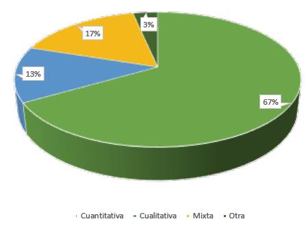 Otra de las metodologías utilizadas es la mixta, la cual aúna aspectos de la cuantitativa y la cualitativa. Al trabajar con herramientas y diseños de ambas, produce resultados interesantes; en contraposición a esto, requiere de un largo periodo para el análisis y tratamiento de los datos (Hernández-Sampieri y Mendoza, 2018). Estos representan el 13 % de artículos analizados.