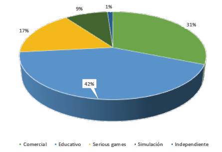 En menor medida, las investigaciones incluyeron videojuegos a) comerciales, b) juegos serios, c) simuladores y d) independientes. Estas tipologías, se enfocan más en la parte lúdica del juego, son escogidas en menor medida, quizás por el miedo a utilizar una herramienta foránea del campo educativo, la cual requiere una preparación previa para poder ser introducida en el aula, pues debe ser adaptada mediante estrategias. De forma general no están contempladas por el profesorado, parten de la adaptación que este haga del videojuego que desee introducir en el aula, las necesidades didácticas que tenga su alumnado o las preferencias temáticas.