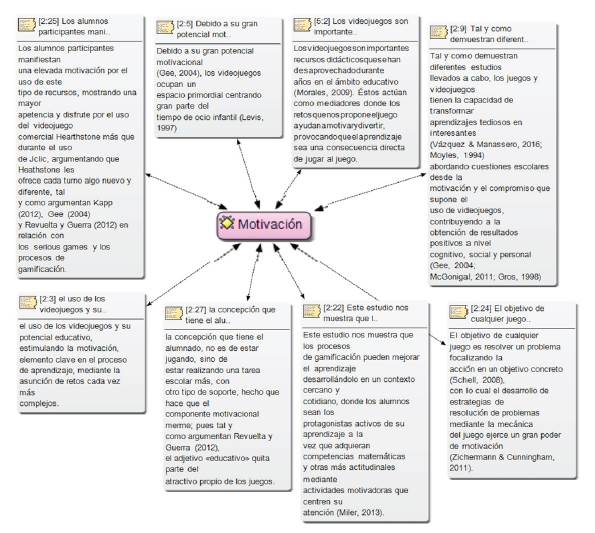 » [2:5] detalla que este fragmento hace referencia al contenido 2, el cual responde al contenido motivación. Además, el número 5 ayuda al investigador a localizar el artículo al cual pertenece el fragmento.