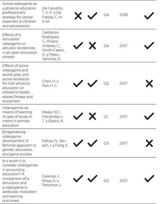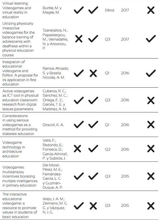 » los documentos con una antigüedad posterior a 2015, pues ambas temáticas -educación y videojuegos- están en constante actualización y un artículo anterior podría contener información desfasada y obsoleta: