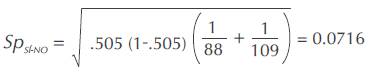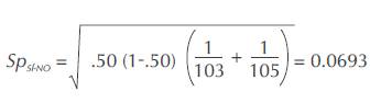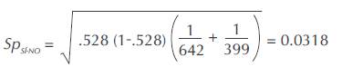 Estimamos el error estándar de la diferencia de las dos proporciones: