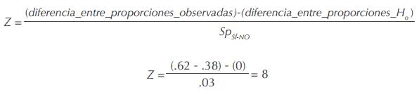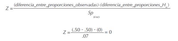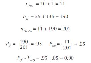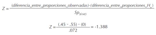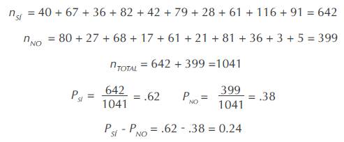 Ho= PSÍ ≤ PNO , la proporción de SÍ es menor o igual que la proporción de NO.