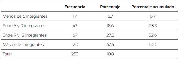 Los resultados son coincidentes con lo sostenido por Ganga-Contreras y Vera (2008) acerca de la imposibilidad de consensuar un número adecuado de miembros que integren los MCC ya que, si bien un tamaño elevado permitiría una mayor diversidad de criterios o perspectivas en los temas abordados, también podría traer aparejado una mayor lentitud e ineficiencia. A su vez, los MCC de menor tamaño podrían ser más influenciables por el Agente. Vale destacar también que lo apreciado en este análisis contradice lo sostenido por Maluk Urigüen (2016) sobre que existe una posición generalizada en que el tamaño de los MCC se vincula con la eficiencia de la gestión organizacional.