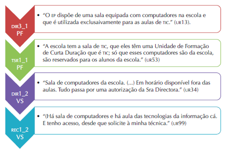 Com efeito, a leitura das unidades de registo exemplificativas da Figura 2 permite-nos perceber que no EP de Vale do Sousa há abertura para os reclusos utilizarem a sala de informática, com autorização prévia e fora do horário em que decorrem as aulas, sendo que no EP de Paços de Ferreira esse cenário não é equacionado, as restrições de acesso são mais evidentes.