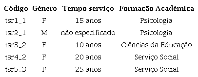 Os reclusos foram previamente convidados a participar no estudo através dos/das tsr, e após confirmação da sua disponibilidade foram informados da data e hora da realização da entrevista. Nas tabelas 1 e 2 podemos observar algumas das caraterísticas dos reclusos e dos TSR relativamente às variáveis que possibilitam conhecer um pouco seu perfil. É importante referir ainda que, no diz respeito às direções, foram entrevistados três diretores, todos do género masculino.