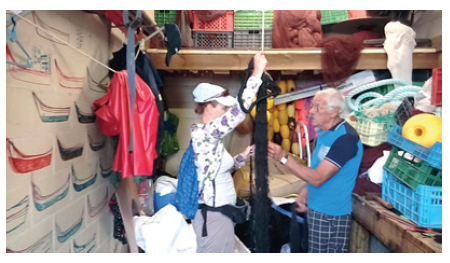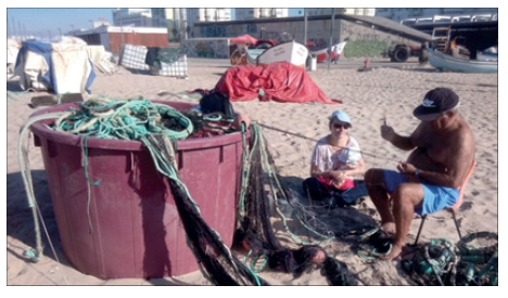 Hoy en día ya el trabajo no es tan físicamente duro como antes; las tareas más duras son escoger el pescado cuando llega la red a tierra y ocuparse de armar y reparar las redes. (Desde el informe realizado conjuntamente con los pescadores, febrero 2018)