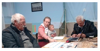 El informe es fruto de un análisis reflexivo colectivo y compartido durante el cual el principal papel de las investigadoras ha sido organizar la información, mientras los pescadores iban comentando entre ellos, precisando y pensando juntos en las implicaciones de la visibilización de las cuestiones surgidas para entender el establecimiento de las relaciones sociales -y de poder- dentro de su propia comunidad; en otras palabras, analizando ellos mismos los datos (Figura 3). Cabe destacar que este proceso ha permitido la triangulación de la información por distintas fuentes y otorga validez comunal (Moral, 2006, p. 156 ) no solo a la información recolectada sino al proprio análisis e interpretación de los datos, lo que es una característica propia de la etnografía crítica participativa.