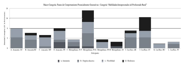 En primer lugar, se destacan algunas habilidades intrapersonales que caracterizan el comportamiento potencialmente generativo manifestado por el profesorado rural (Véase figura 1).