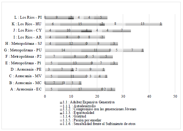 Por otra parte, el despliegue progresivo de comportamientos potencialmente generativos, (optimismo, experiencias y saberes transcendentes) inciden de modo favorable en los aprendizajes construidos en la ruralidad, posibilitando la construcción de una relación recíproca, cercana y empática con sus estudiantes. Al respecto, McAdams y Guo (2015) identificaron un patrón de temas narrativos recurrentes vinculados a una vida especialmente cariñosa y generativa, configurando un "Yo redentor" que potencia la trascendencia y estabilidad en sus relaciones. A su vez, se ha observado que la trascendencia favorece un mayor grado de bienestar en las relaciones interpersonales (Coward, 1996), en particular en aquellas profesiones que implican una mayor preocupación por el cuidado de otros/as (Reed, 2014). Por ende, la trascendencia permite que la práctica docente alcance un liderazgo significativo en las comunidades educativas en donde se desempeñan los profesores, potenciando la colaboración con los diversos actores sociales presentes en el territorio. Al respecto, Sunderman (2020) destaca la importancia de generar investigaciones orientadas a la comprensión y desarrollo de la generatividad en aquellas actividades que involucran el mentorazgo y la tutoría en el campo de la educación, develando en parte, sus implicaciones socioeducativas para el despliegue del liderazgo y las aportaciones prosociales a lo largo del ciclo vital (Krahn et al., 2021).