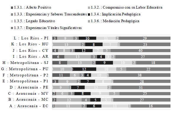(...) siempre he buscado que mis estudiantes sean personas de bien y que algún día ellos se acuerden de algunas situaciones que compartieron conmigo o que aprendieron de mí como persona y como profesor, yo creo que ese es el legado. que recuerden aquel consejo que les di. tratar de hacer las cosas lo mejor posible y siempre tomando en cuenta las diferencias de cada uno y su situación personal, su situación familiar... el aspecto valórico para mí, es el legado más importante (...) (MV, Educador Rural, Región de La Araucanía).