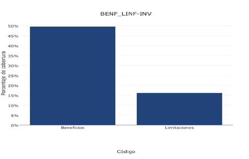 Tras preguntar a los sujetos participantes sobre los beneficios y las limitaciones que encuentran en el uso de LINF (P3), sus respuestas hicieron posible identificar la segunda y tercera categoría de análisis, allí se obtuvo una mayor cobertura de información en beneficios (49 %) que en limitaciones (17 %) (Véase figura 2).
