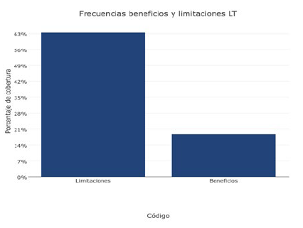 Para este objetivo se establecieron la cuarta y quinta categorías de análisis. Si bien, al referirnos al LINF, registramos más beneficios que limitaciones, en lo que respecta al LT (P4) obtenemos una frecuencia de cobertura de información mucho mayor en limitaciones (63 %) que en beneficios (18 %) (Véase figura 4).