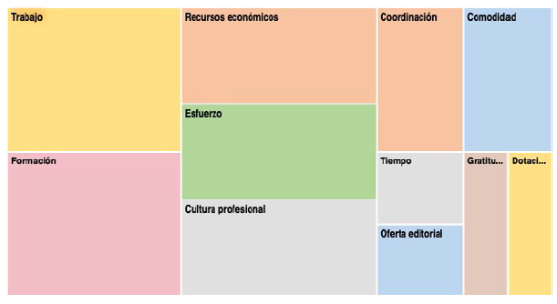 Tras los testimonios, se muestra el mapa jerárquico de esta categoría donde se ordenan los códigos según su frecuencia (Véase figura 6).