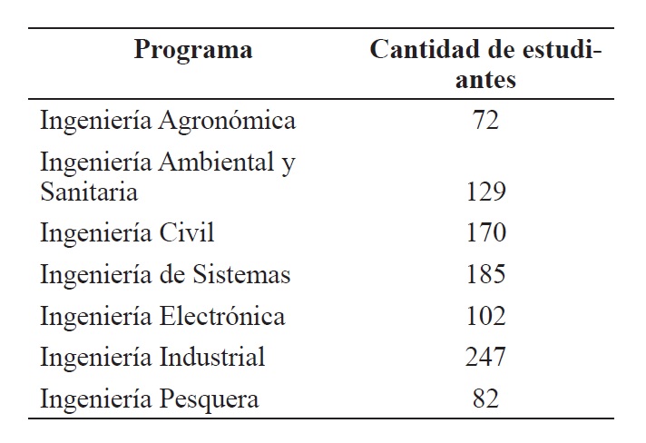En la tabla 1 se encuentran relacionados el número de estudiantes que realizaron la encuesta de acuerdo con el tipo de Ingeniería que estudian: