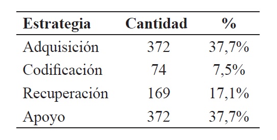 La distribución de los estudiantes de acuerdo a cada estrategia de aprendizaje se observa a continuación (tabla 3):