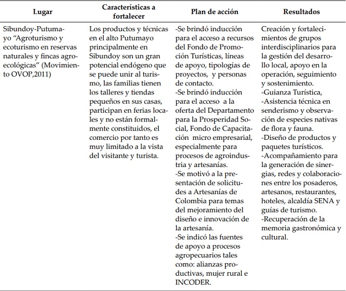 En 2008 surge el Movimiento OVOP como estrategia de desarrollo local que se fundamenta en el trabajo de las comunidades, que a través de productos propios y únicos se convierten en fuente de desarrollo. Esta iniciativa persigue generar transformaciones económicas y sociales en una comunidad, buscando la inclusión y que se logre una distribución más equitativa en las comunidades (Movimiento OVOP, 2011). En la actualidad este turismo se viene desarrollando en algunas comunidades como grupos étnicos y familias campesinas, entre otras, lo que ha permitido que ellas ejerzan un papel protagónico en su planificación y en su gestión, al igual que participen en la distribución de los recursos económicos que se generan.