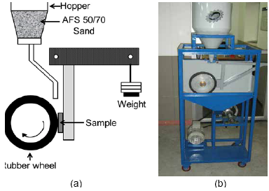 The technique used to evaluate the resistance to abrasive wear was the rubber wheel / dry sand (see Fig. 2).