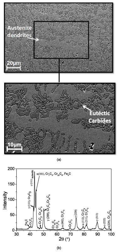 Therefore, the microstructure must present a tough matrix and high volume fraction of hard chromium carbides [9, 10], such as a high carbon hard martensite matrix hardened by secondary carbides, because retained austenite reduces the hardness which might lead to a decrease in the abrasion resistance.