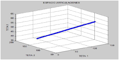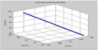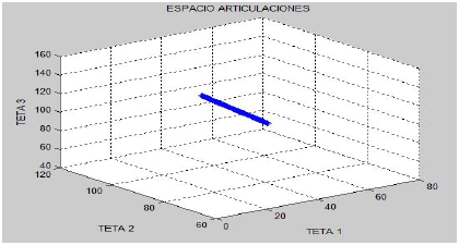 La descripción de movimientos en el espacio de articulación considera métodos de generación de rutas en los cuales las formas de estas (en espacio y tiempo) se especifican en términos de funciones de sus ángulos de articulación (Fig. 4) [10], [14].