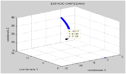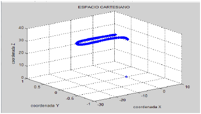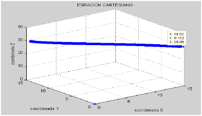 De igual manera, el comportamiento del robot Delta en el seguimiento de los puntos que conforman la trayectoria en el espacio cartesiano se puede apreciar en la Fig. 8, Fig. 9 y Fig. 10.