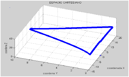 La descripción de movimientos en el espacio cartesiano considera métodos de generación de rutas en los cuales las formas de estas se especifican en términos de funciones que calculan la posición y la orientación cartesianas como funciones del tiempo (Fig. 3); generalmente se prefiere en planificación de movimientos donde no se incluyan obstáculos en el entorno y en los cuales la dinámica del robot no tenga mayor relevancia [10, 11].