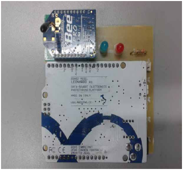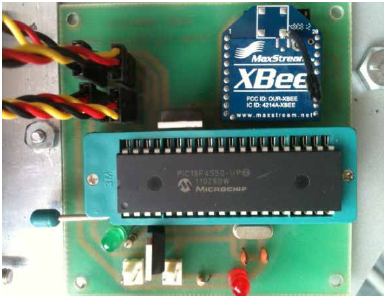 La implementación de un ARDUINO® Leonardo [17] en lugar del PIC 18f4550 tiene como principal ventaja brindar la capacidad de programar el robot online, es decir, sin la necesidad de estar retirando el microcontrolador del circuito para reprogramarlo cada vez que se requiera efectuar un cambio en el código. Por otra parte, se utilizará la salida de alimentación de 3.3V del ARDUINO® Leonardo para alimentar directamente el dispositivo de comunicación inalámbrica Xbee, reduciendo el número de componentes electrónicos por manipular y, por consiguiente, el tamaño del PCB. Finalmente, se utilizará directamente el Jack de alimentación AC del ARDUINO® Leonardo, lo cual permitirá mayor portabilidad del robot Delta, al no depender exclusivamente de una fuente de alimentación del laboratorio para su adecuado funcionamiento; el circuito mejorado se ve en la Fig. 29.