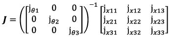 Así, la matriz jacobiana del robot Delta es planteada de la forma (2)[6]: