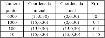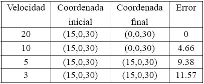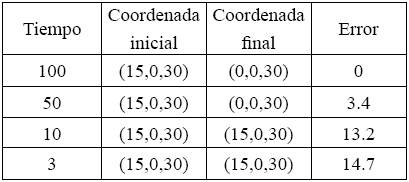 Al realizar un análisis de la trayectoria variando los puntos vía (Tabla 4), la velocidad (Tabla 5) y el tiempo (Tabla 6) de ejecución, se puede observar el error que genera la variación de los distintos parámetros, así como la incidencia que tiene cada parámetro en el algoritmo de cinemática inversa.