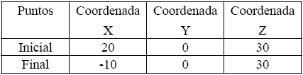2) Trayectoria 2: La segunda trayectoria por implementar se diseñará para formar una trayectoria curva, más específicamente, una semicircunferencia en el espacio XYZ, manteniendo un valor constante en la coordenada Z, con el objetivo de unir dos puntos coordenados especificados por el usuario, que se pueden evidenciar en la Tabla 7.