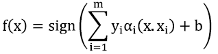 Finalizados los procesos de acondicionamiento y extracción de las características de las señales del habla subvocal, se realizó el proceso de clasificación, que permite decidir a qué clase pertenece una nueva señal que ingrese al sistema; esto se logró entrenando una Máquina de Soporte Vectorial (MSV) en la Raspberry Pi. La MSV es una técnica de clasificación, en este trabajo se usó un entrenamiento supervisado [10]. La ecuación (7) modela el proceso de clasificación de la SVM.
