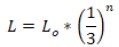 Equation (5) calculates the length of each line segment (L) at each generation (n); here, the initial length (L0) corresponds to the lengths of the sides of the initial equilateral triangle.
