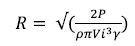 Where: R: Propeller ratio (blade length), P: Nominal power and γ: Wind turbine general performance.