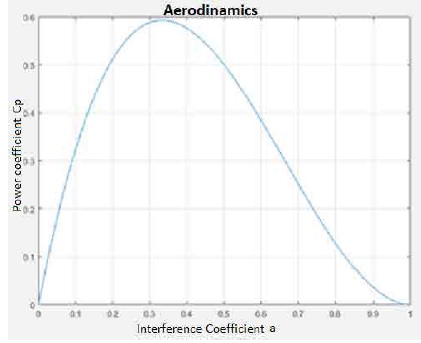 Cp reaches its maximum value when a=1/3 (Fig. 4); therefore, by substituting a in (5), we obtain the power coefficient maximum value: