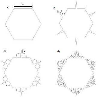 Fractal geometries are those geometric relationships that are responsible for interpreting and representing the various forms of nature [2]; in addition, they allow measuring the irregularity of the objects, the natural processes and the physiology of the human body [3]. Among the most representative fractal geometries are the Koch snowflake, the rug of Sierpinski and the Cesàro curve [4]. Similarly, the structure of irregular objects (e.g., the organs of the human body) [5], the micro-organisms, the growth of normal and carcinogenic cells [6], and the cerebral blood flow in people with Alzheimer's have been analyzed. Previous research has been able to develop tissues from biocompatible materials from fractal biomimeticas geometries, which seek to obtain tissues similar to those of the living organisms [7].