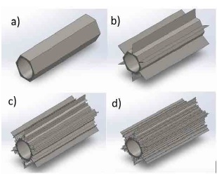 After making the sketch to implement the fractal tree on the extended surface of a tube for heat exchangers, we designed the tube with the computer-aided design (CAD) SolidWorks (Fig. 2). The initial design of the tube with extended surface allowed performing the analysis by finite elements with the computer-aided engineering (CAE) ANSYS, to evaluate the rate of heat transfer and its behavior.