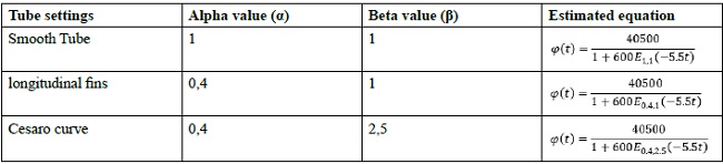 When α=β=1, you get a function Exp(x)=e x, which leads to the conclusion that the generalized function of Mittag-Leffler resembles the widespread exponential function; therefore, it was possible to estimate the generalized logistic models [26]. To conduct a mathematical approximation, the model of the smooth tube was adjusted with equation (3), starting from the conditions suggested in [27].