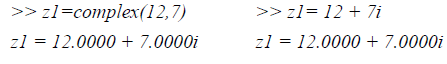 The environment of MATLAB is designed to be used directly through commands. In addition, it is possible to graphically display the results [7]. We can create a complex number in MATLAB in the following ways [1]: