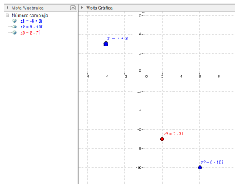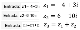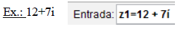 In GeoGebra the imaginary part (i) must be written with the command Alt+i to be identified as a complex number [10]. To represent a complex number in the plane, the number is entered in the input bar [11].