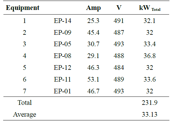 Technical visits to each area and department of the warehouse were conducted to develop a detailed field survey. The survey included identifying all types of tubing (water, fuel, air-conditioning, etc.) and the type and quantity of lights, as well as gathering technical plate information from all the operating equipment and recording their physical operating parameters (e.g., temperature, pressure, capacity, flow, electrical parameters). Likewise, operators were visited to collect variables that could not be obtained directly from physical measurements, such as usage habits, maintenance hours, and considerations beyond maintenance controls, among others. This information was used to identify various opportunities for increasing efficiency and saving energy and improving operating programs and maintenance with the systems and equipment [7].