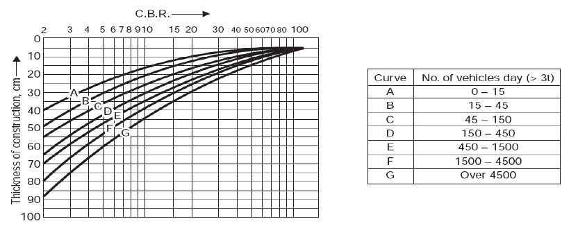 The vehicles per day for untreated soil and the optimum percentage of CR (15%) were found and compared using the CBR value; the thickness of the flexible pavement was calculated using the chart developed by Alam [31] (Fig. 6). The thickness of the layer was calculated based on the number of vehicles per day (Fig. 7).