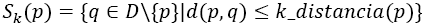 Para al menos k objetos o′∈ D\{ p} se mantiene que la d( p,o′)≤ d( p,o).