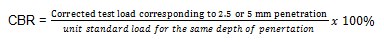 California bearing ratio was conducted as per IS 2720 – part 16 [26] in a 155 mm diameter and 175 mm height. The soil was prepared at optimum moisture content for a disturbed sample under dynamic compaction to a height of 125 mm and surcharge plate was placed during loading. The test was conducted for both unsoaked and soaked for 4 days’ condition. The bearing ratio was found using equation (1); the value of 2.5 mm penetration and 5 mm penetration was calculated. For 2.5 mm penetration, the standard load is 1370 kg and for 5 mm penetration, it is 2055 kg.